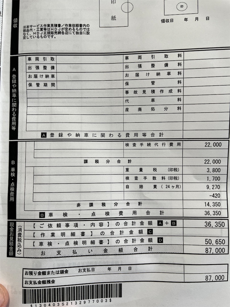 オイル交換は自分で済ませ、今回ブレーキフルード未交換だったので思っていたよりかは安く済みました。